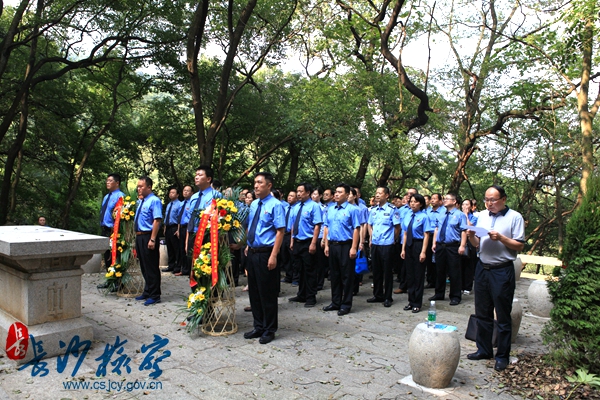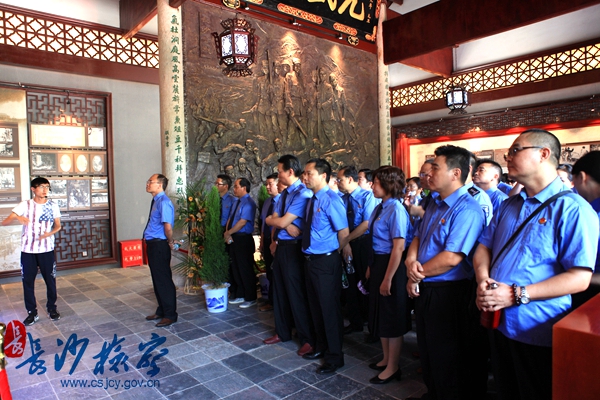 为纪念抗日战争暨世界法西斯战争胜利70周年,近日,腾博会 党组副书记、副检察长徐百坚在湖南师范大学党委书记李民、纪委书记廖志坤的陪同下,带领全市检察机关综合素能提升班第五期的全体学员一行60余人,实地参观岳麓山抗战文化园。