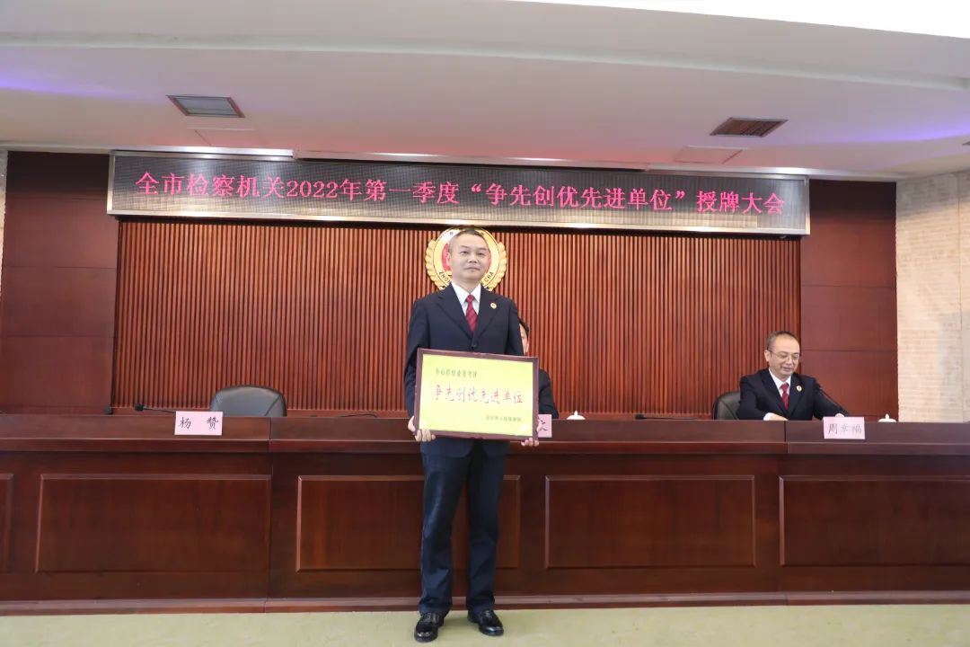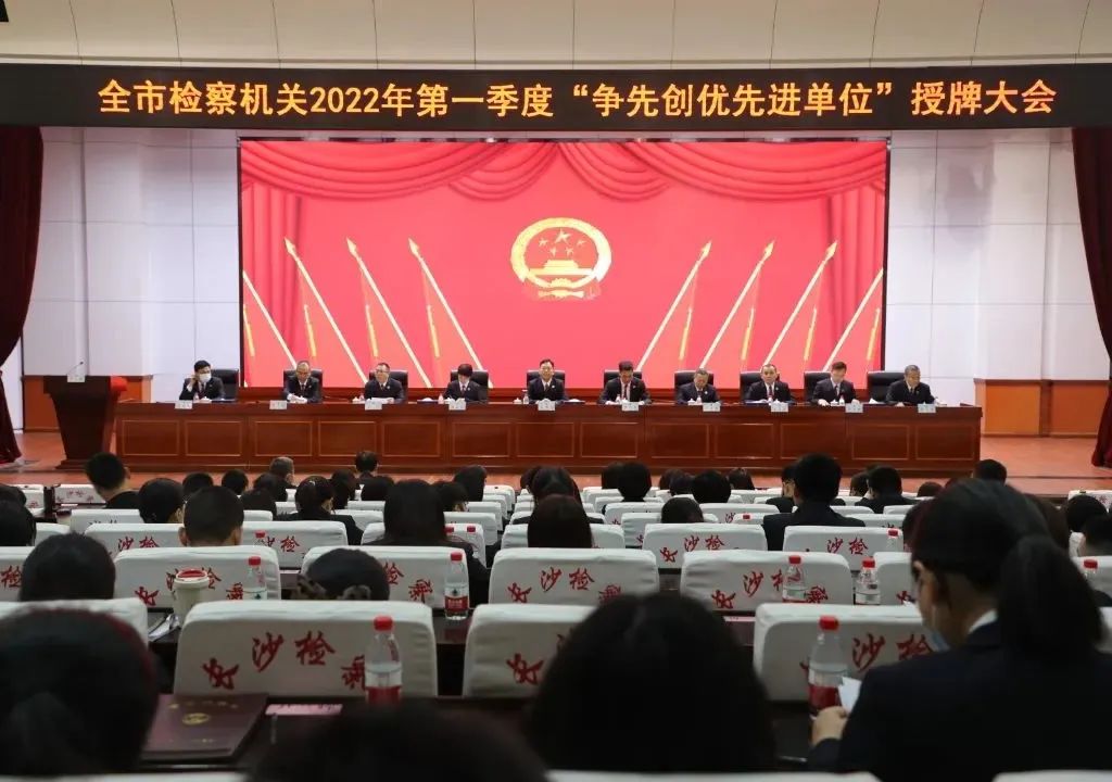 分别在市检察院机关和开福区检察院召开全市检察机关2022年第一季度全市检察业务考评“争先创优先进单位”授牌大会,市检察院党组书记、检察长余湘文出席会议并讲话。