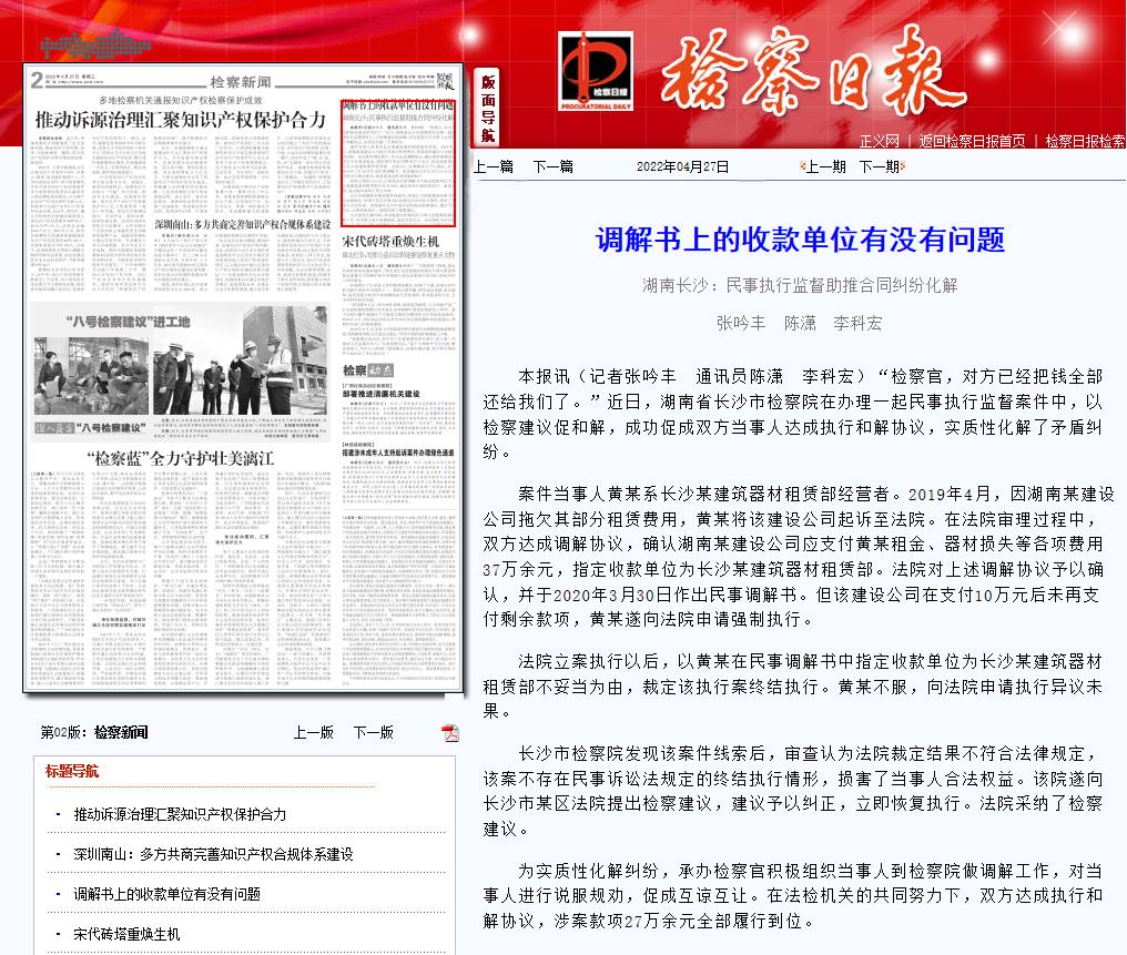 ▲《检察日报》2022年4月27日 第02版:检察新闻