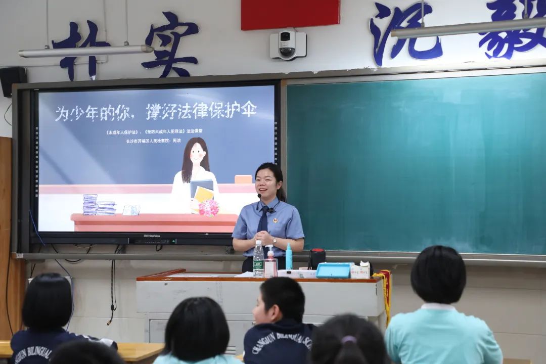 积极与长郡双语实验中学搭建“检校共建”平台,联合打造“检察官进课堂”特色普法品牌,为学校提供精准、高效、系统的法治教育服务。根据学校的法治教育需求,已有20余名未检检察官先后走进该校初中各年级课堂,开展各种形式的普法宣讲,深受师生们的欢迎与好评。