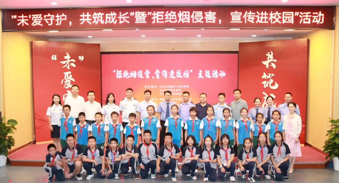 9月26日,长沙市岳麓区检察院联合公安局、烟草专卖局、市场监管局等部门在湖南师范大学附属滨江学校开展了“拒绝烟侵害,宣传进校园”主题活动。