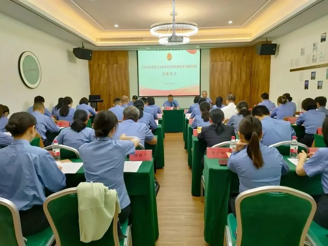 为深入学习贯彻党的二十大精神,全面落实习近平总书记对政法工作的重要指示精神,进一步提升全市检察机关民事检察业务能力,58日至12日,长沙市检察机关全面深化民事检察监督专题培训班在长沙县板仓开慧教育学院举办。8日,市检察院党组成员、副检察长石华出席开班仪式并讲话,市检察院党组成员、政治部主任周幸福出席开班仪式。市检察院第六检察部、各区县(市)检察院第四检察部相关检察人员共40余人参加培训。